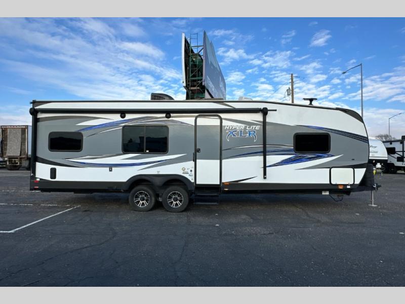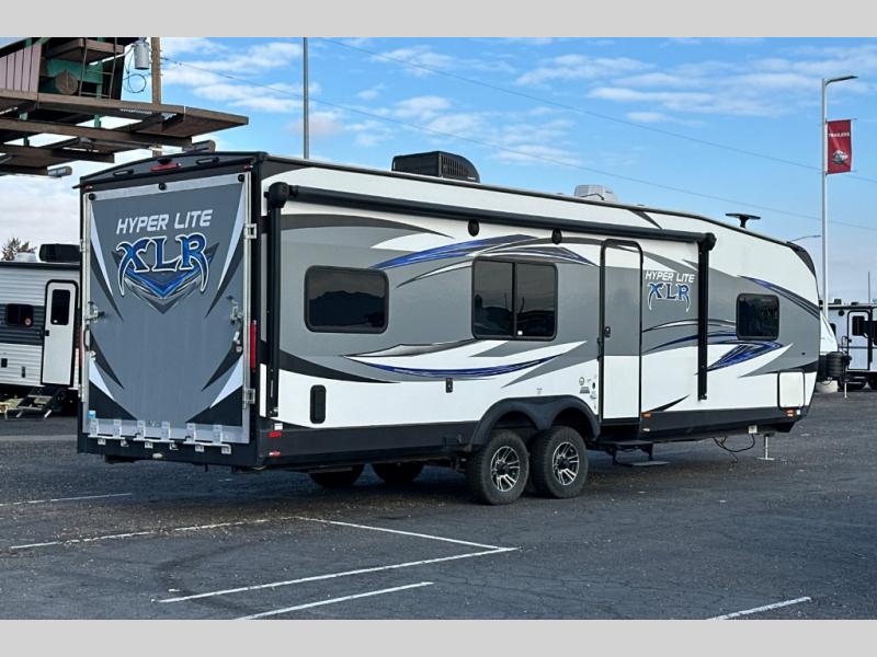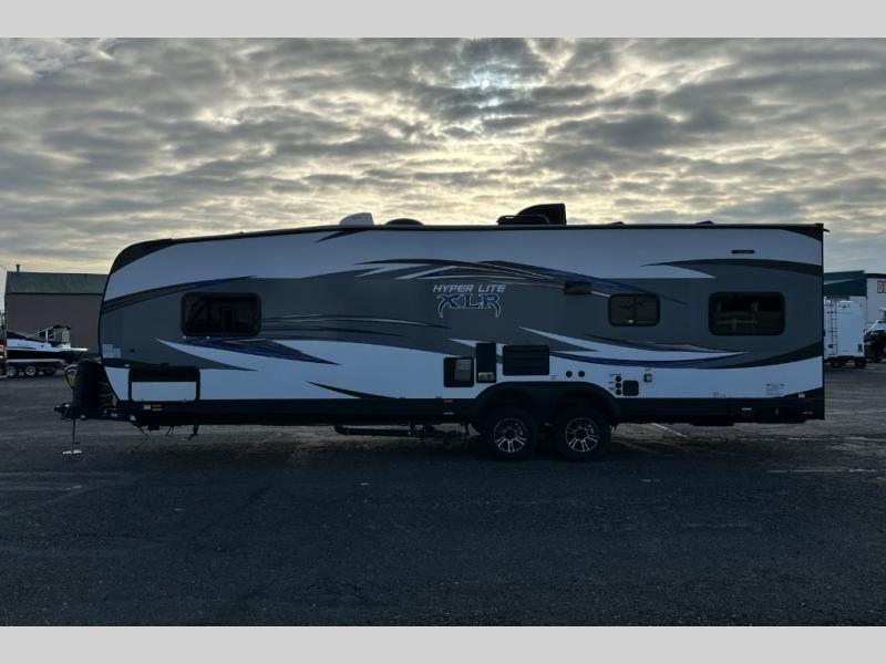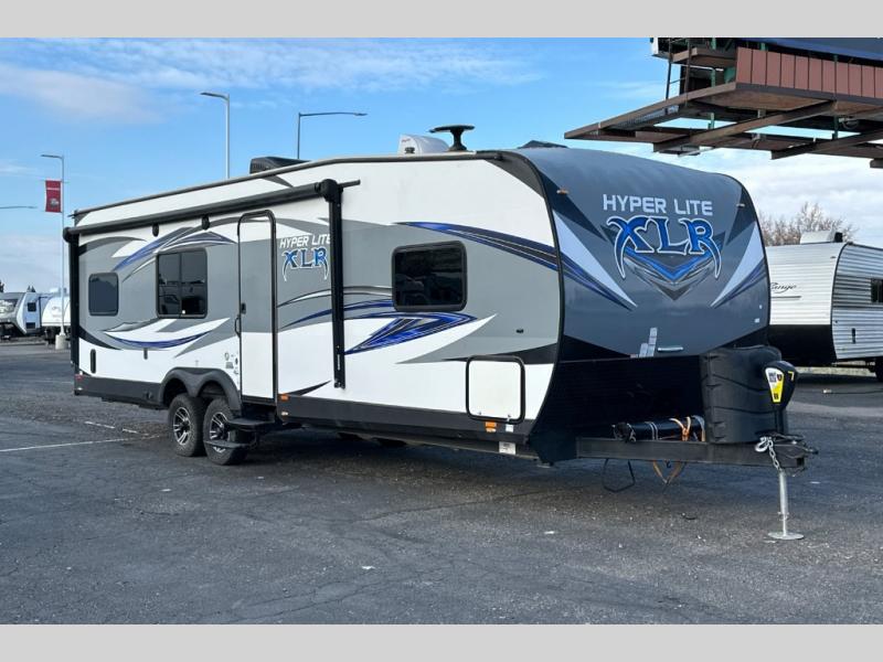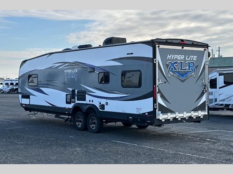 Head out for a weekend of fun and adventure in the 26HFS XLR Hyper Lite toy hauler travel trailer by Forest River. This model features not only cargo space for your off road toys and gear, but yet enough sleeping space for eight people.