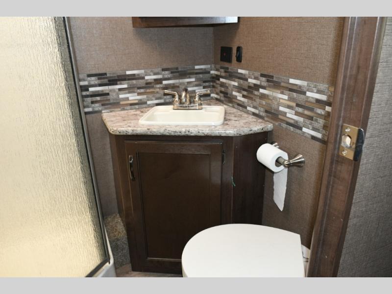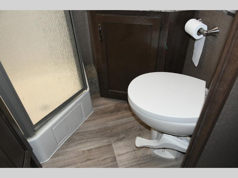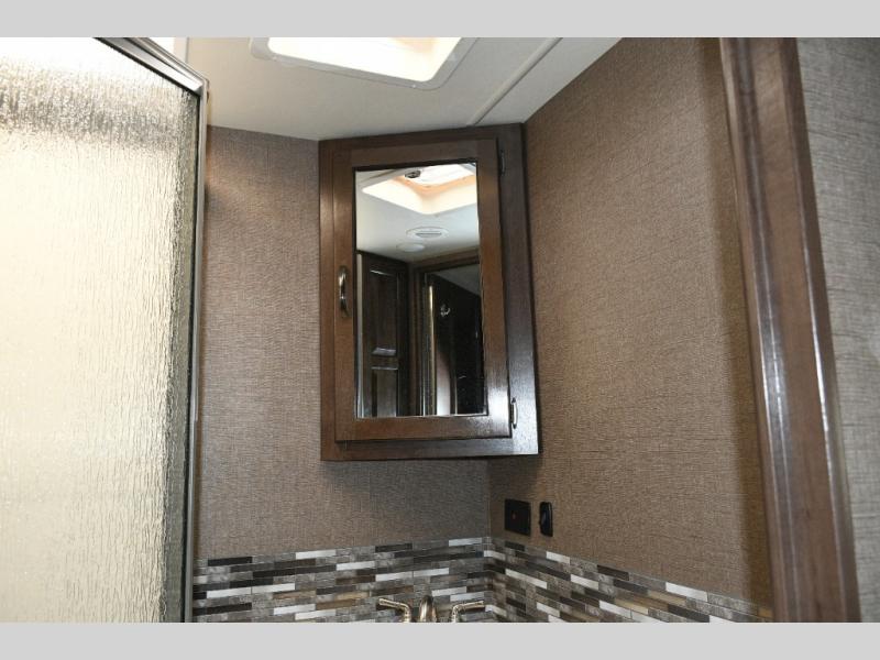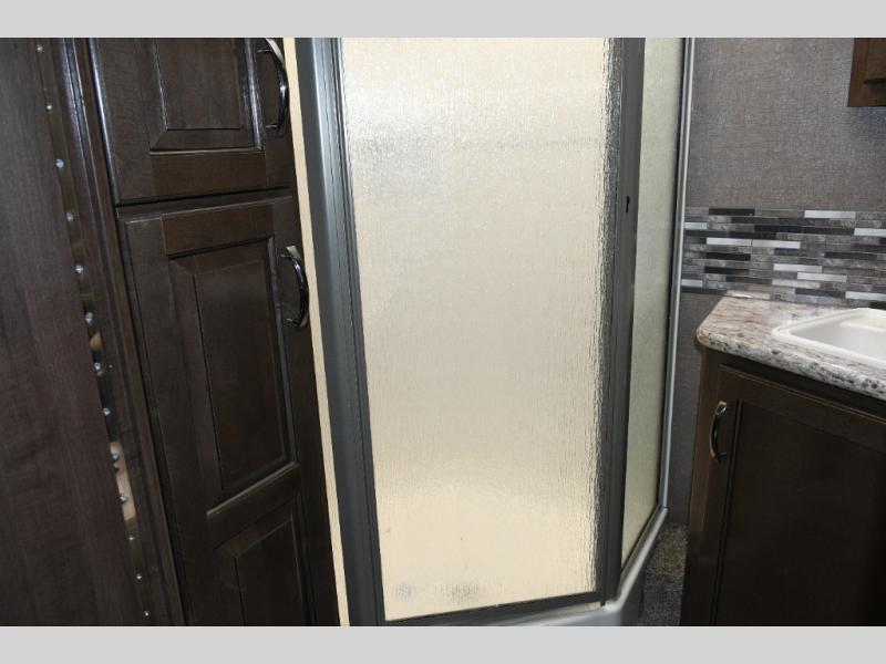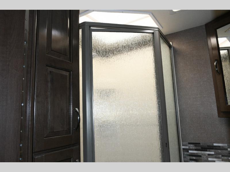 Full Rear Bathroom – Refresh on the road with a walk-in shower and organized storage for toiletries and linens.