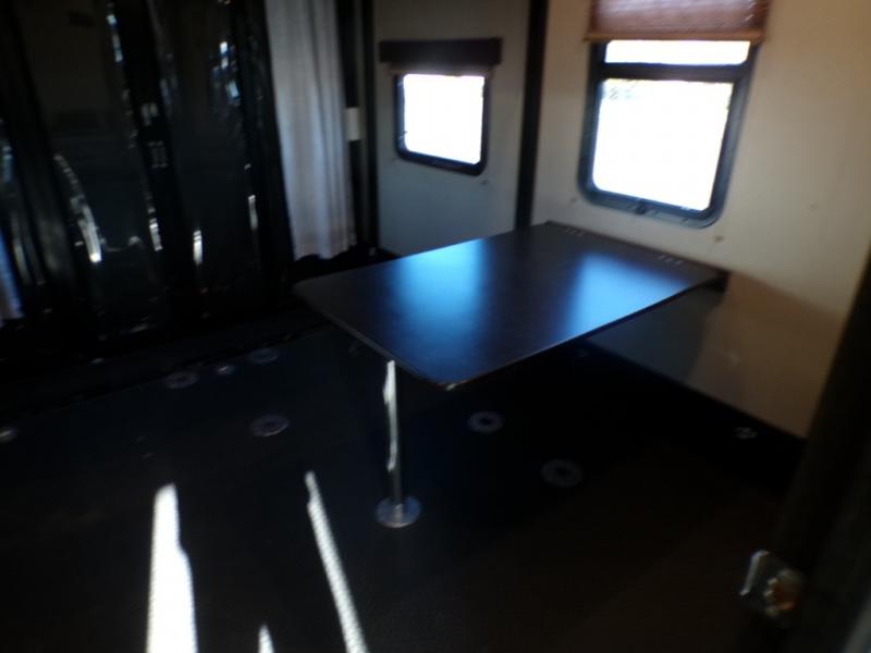 The 11' garage features a rear ramp door for ease in loading up the toys. When the toys are removed you have an option of adding a happi-jack bed with dual roll-over sofas/table for added seating and sleeping space while camped. There is a side man door for easy access when the rear ramp door is closed or patio is raised.