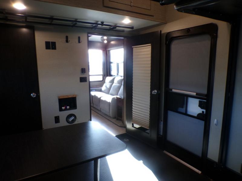 This Momentum M-Class toy hauler fifth wheel by Grand Design has the luxury and space you desire when taking on the great outdoors! This dual entry 350M unit features triple slides, one and a half baths, and 11' of garage space, plus a loft bed too!