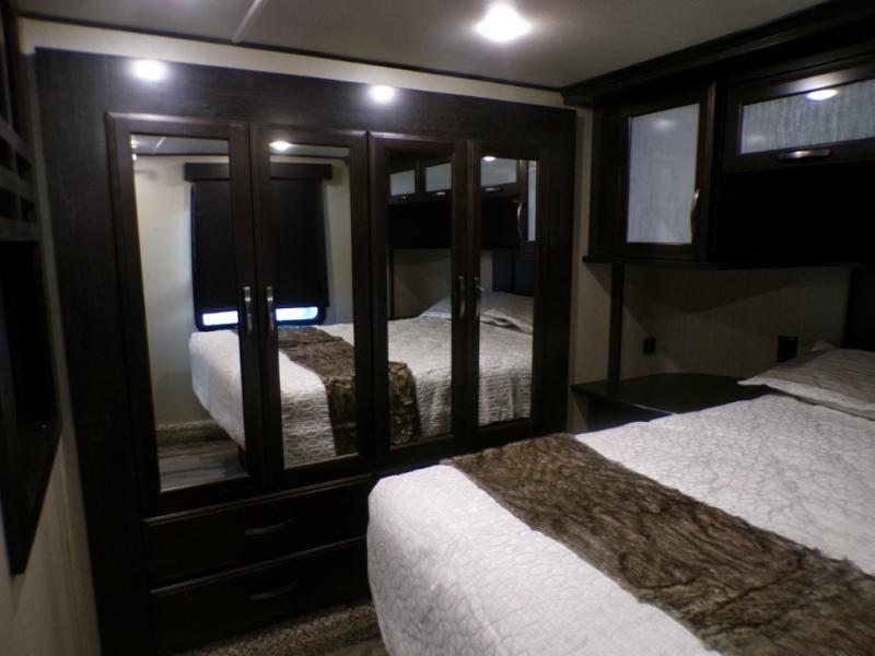The exterior unobstructed pass through storage, plus the universal docking station provide extra conveniences when traveling. You can even choose an optional exterior entertainment center with LED TV and DVD, an optional Onan 5.5KW gasoline generator, and more!