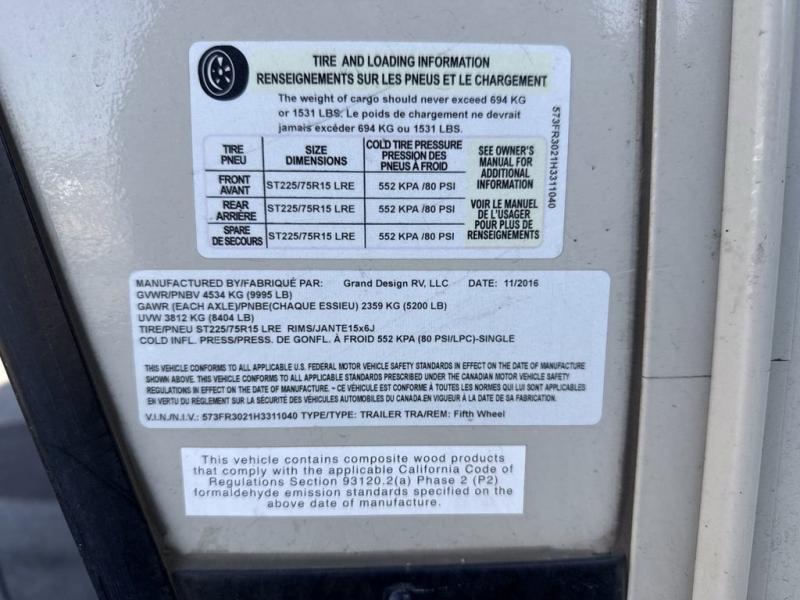 Used 2017 Grand Design Reflection REFLECTION Fifth Wheel