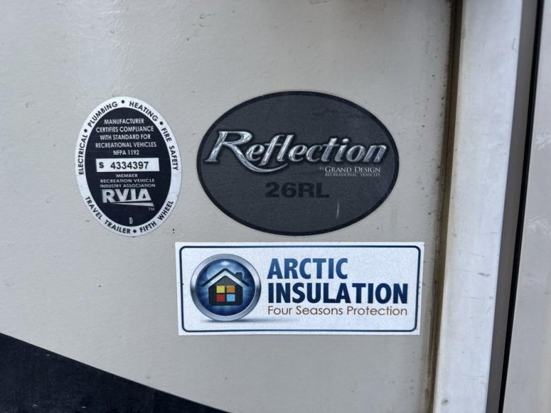 Enjoy all of your camping trips on the open road in this Grand Design Reflection 26RL fifth wheel featuring triple slides, a rear living layout and kitchen island, plus a front private master bedroom.