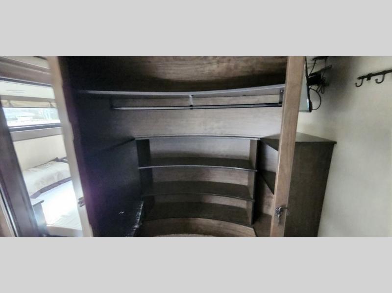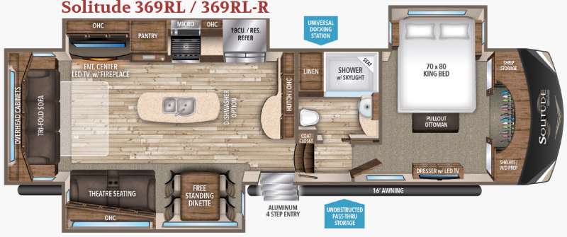 You will appreciate the exterior unobstructed pass-thru storage when loading and unloading your outdoor gear, and the universal docking station as well.