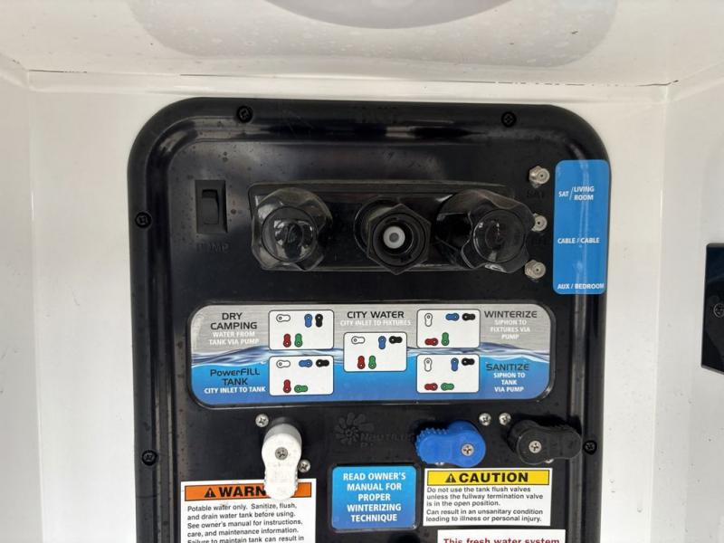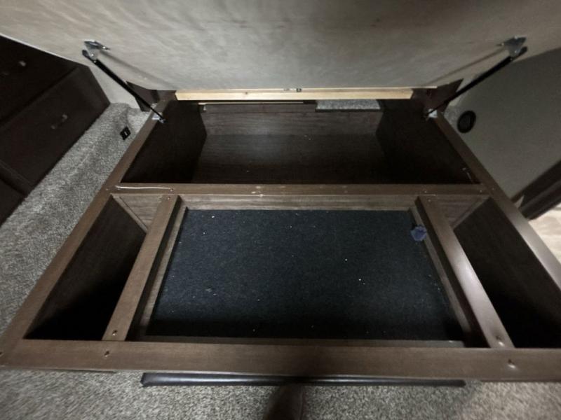 You will appreciate the shade from the two awnings, the exterior unobstructed pass-through storage when loading and unloading your outdoor gear, and the universal docking station as well.