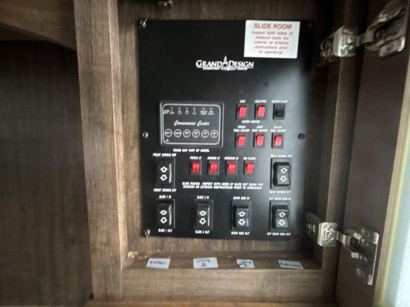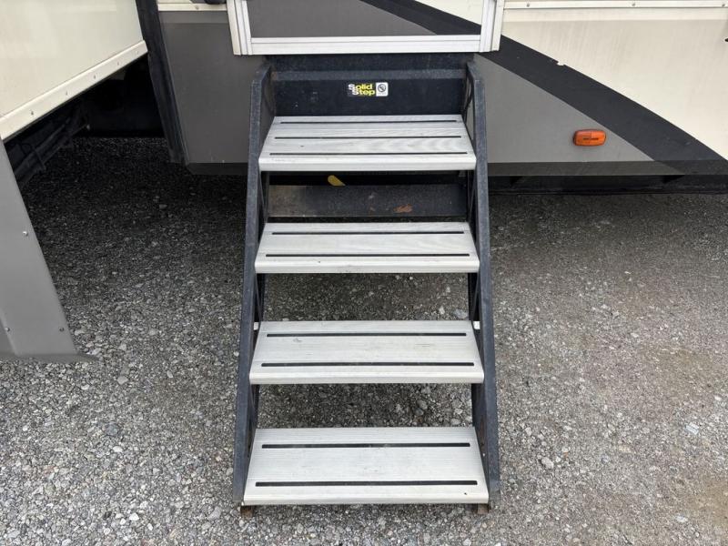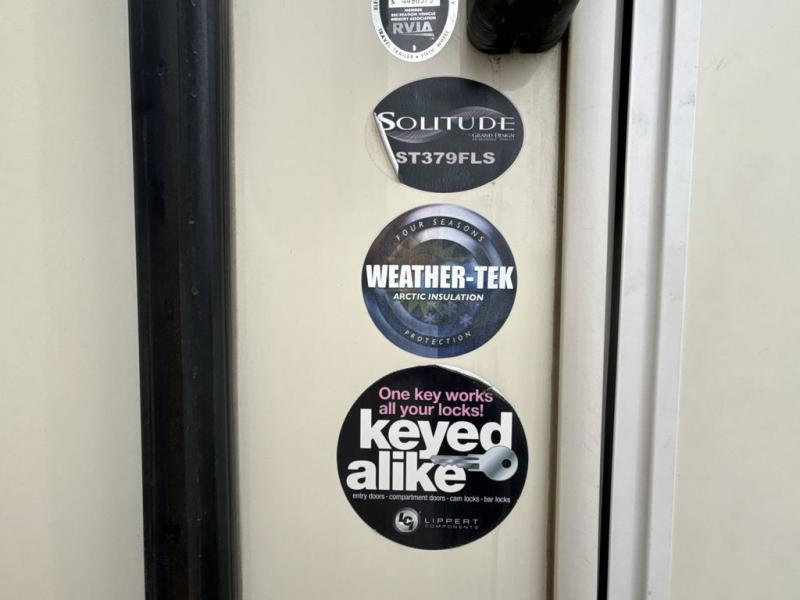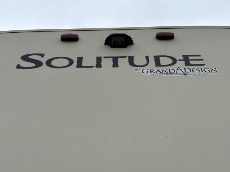 This Solitude fifth wheel 379FLS by Grand Design features a super front living space perfect for entertaining, a rear bedroom with private entry from outside, and FIVE slides for added interior space. This unit seems to have it all. Traveling will feel as though you took your whole house with you!