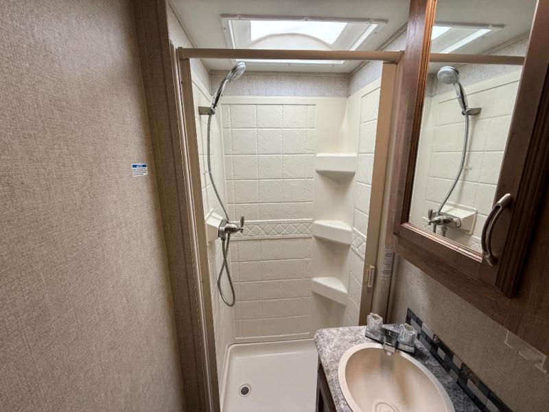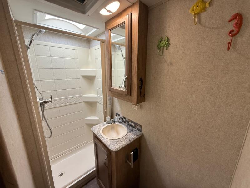 The rear bath makes it easy to stay clean and refreshed with a tub/shower, toilet, and vanity with sink, plus so much more!
