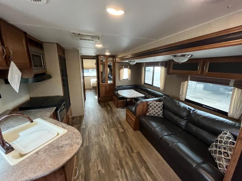 This Gulf Stream Innsbruck travel trailer model 30FRK features plenty of space inside including a bunkhouse up front, two slide-outs for added interior space, and double entry doors.