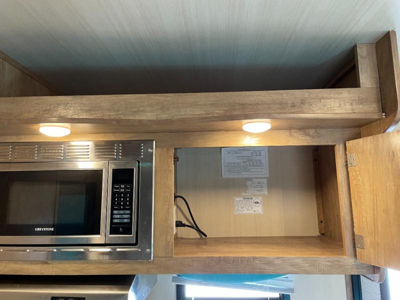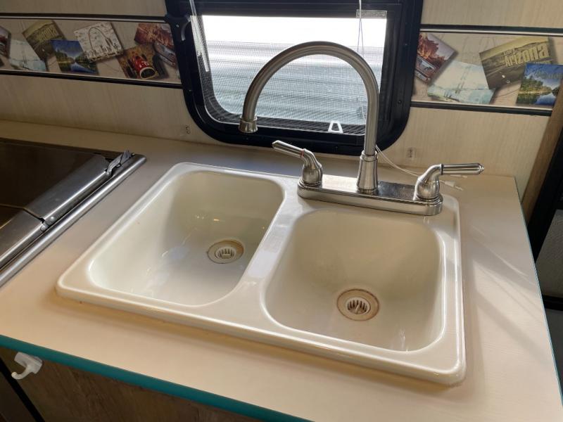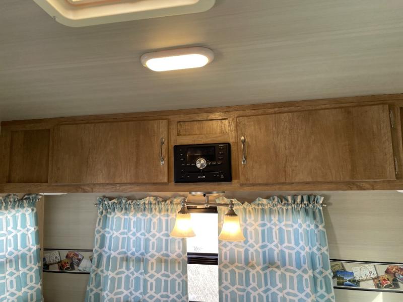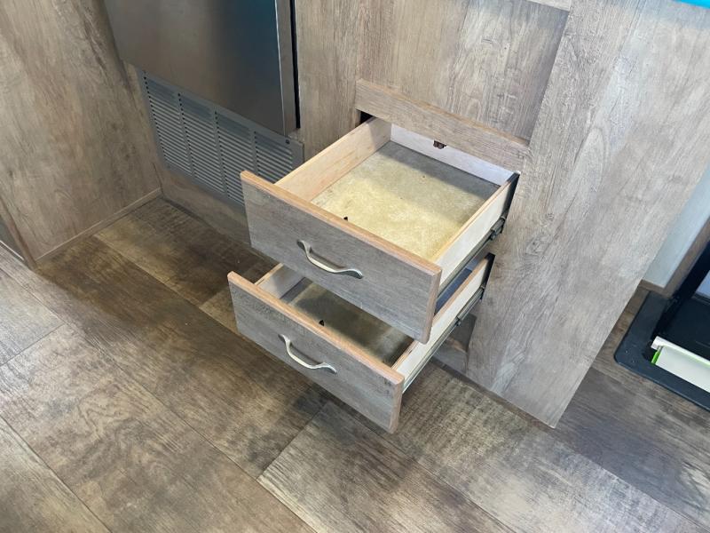 As you step inside model 23RSS, to your left you will find a rear booth dinette with overhead storage. This is a great place for meal time or relaxing. If you need additional sleeping space, the dinette can quickly be converted for one added family member or guest.