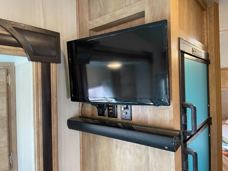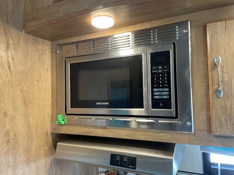 Straight in through the door you will find a slide out jack-knife sofa including end tables, and overhead storage in both upper corners. The sofa provides even more space for overnight guests. Just off the slide you will enjoy an entertainment center where you can add a flat screen TV.