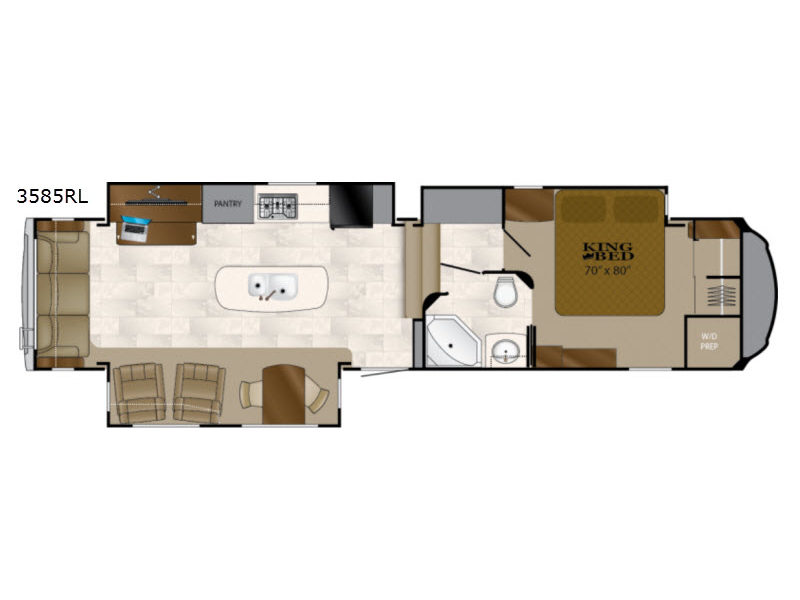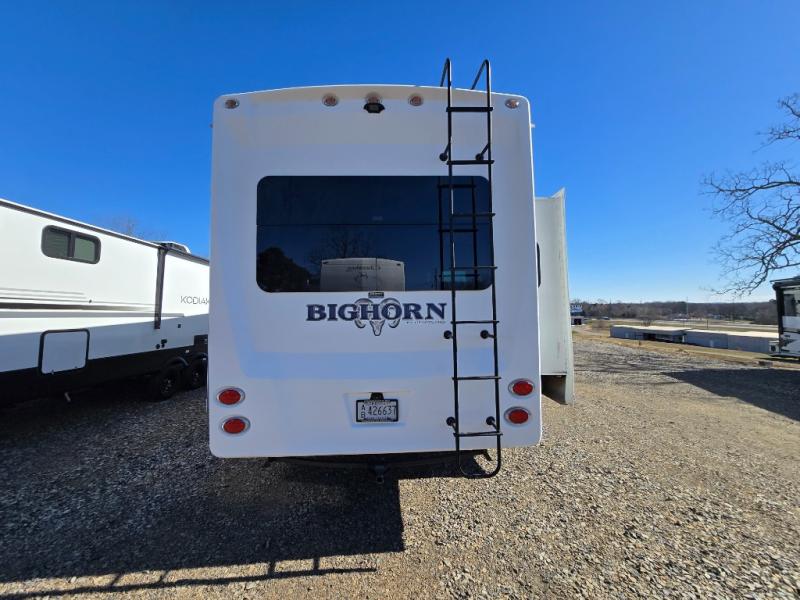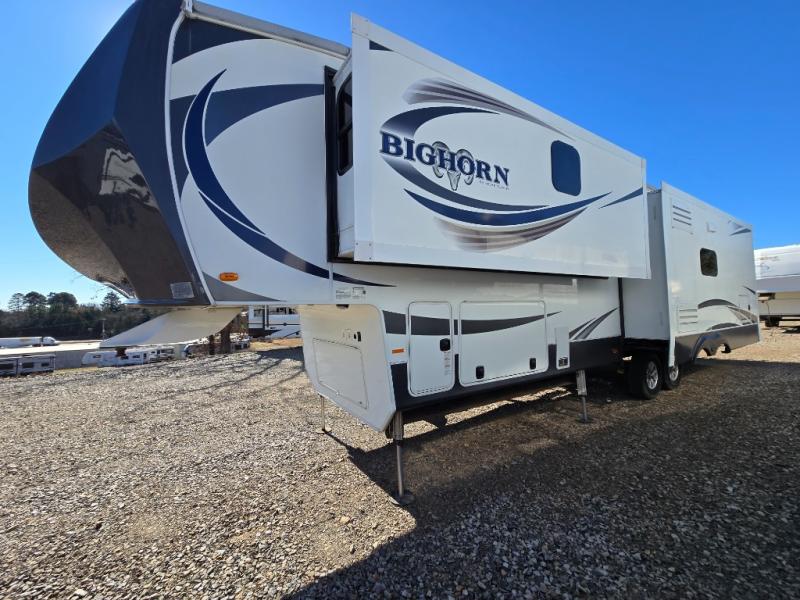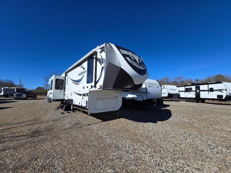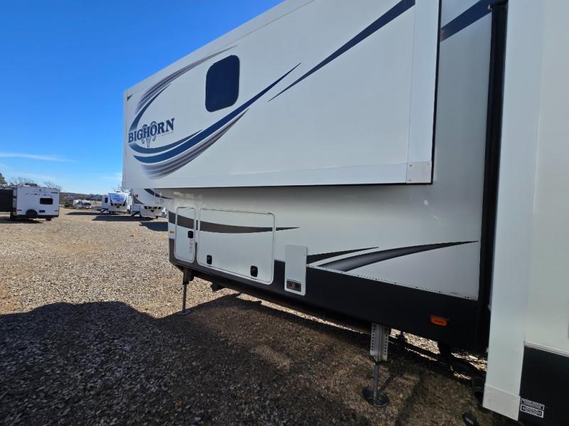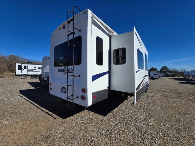 Enter this Bighorn fifth wheel model 3585RL by Heartland and see how convenient all of your future camping trips can be with triple slide outs for added interior space, a kitchen island for added prep space, plus more!