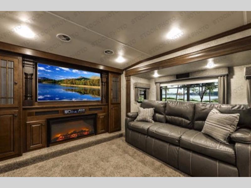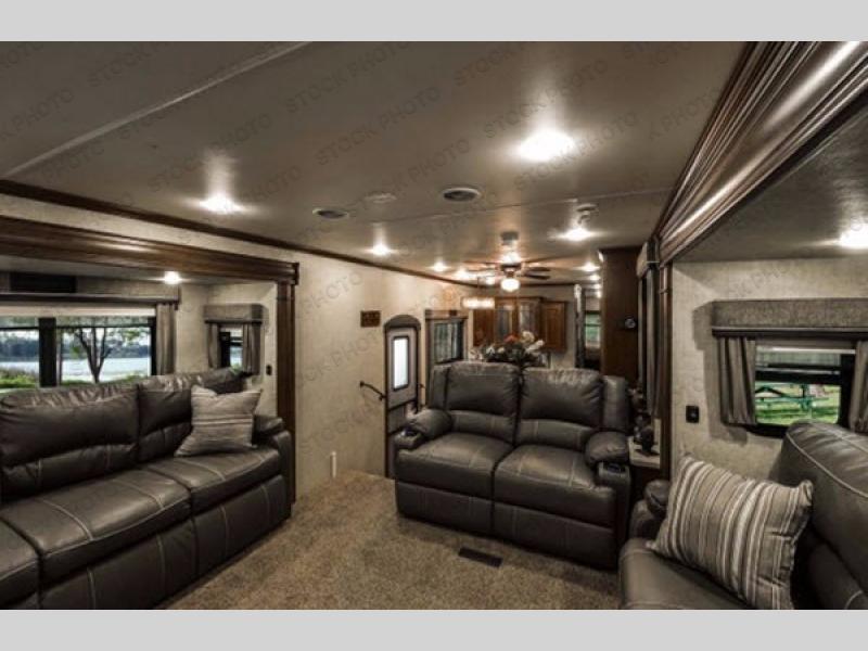 This Bighorn fifth wheel by Heartland RV features a front living area, a rear bedroom with king bed, and FIVE slides for added interior space!