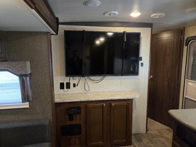 Opposite the kitchen enjoy being seated at the L-sofa with storage space above. Adjacent to the sofa slide out is an entertainment center with an optional flat screen TV along the interior wall.
