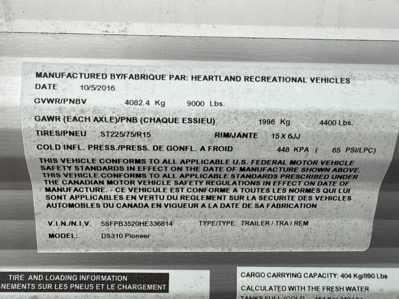Used 2017 Heartland Pioneer DS 310 Travel Trailer