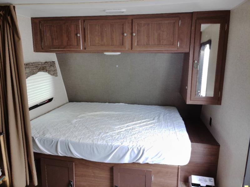 Located in the very front of this model there is a queen bed, overhead cabinets, and a storage area at the foot of the bed, plus so much more!