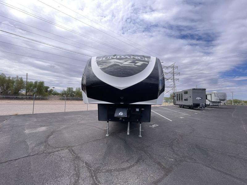 Step inside this Heartland Sundance XLT fifth wheel model 269TS which features a rear living layout, front bedroom with a full wall closet, triple slide outs, and a convenient kitchen island.