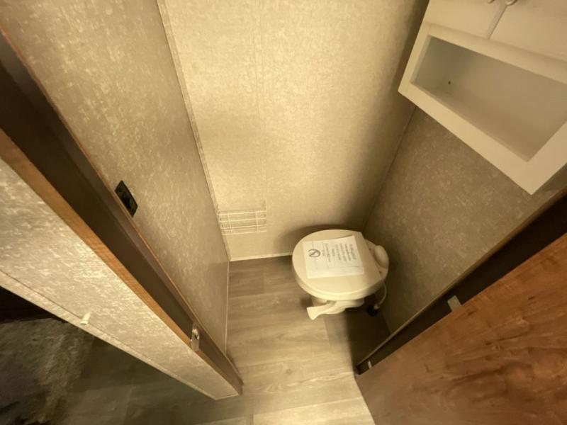 The front bedroom provides a relaxing retreat to get a great night's sleep for the next days adventure. You will enjoy a king size bed slide along the road side, a full wall closet along the front wall, plus a dresser in the corner of the room, and much more inside and out!