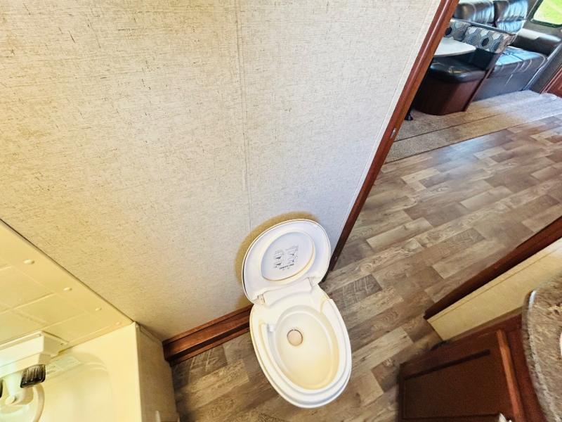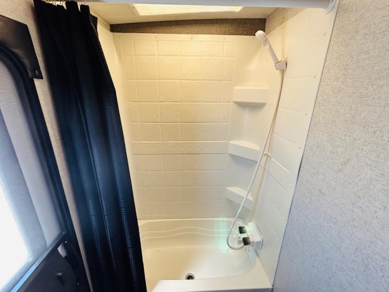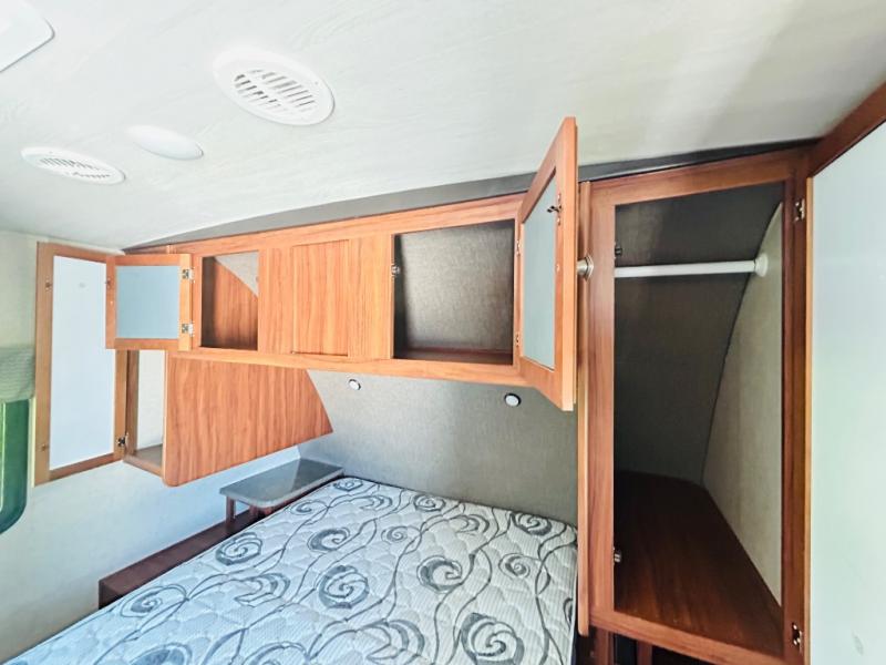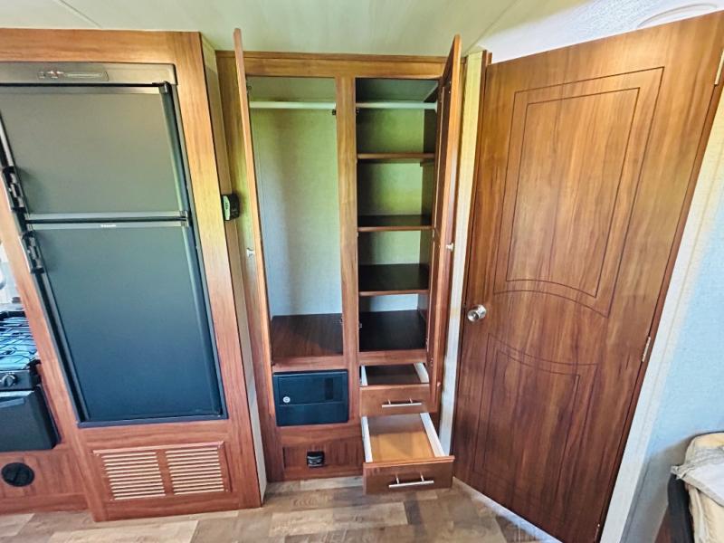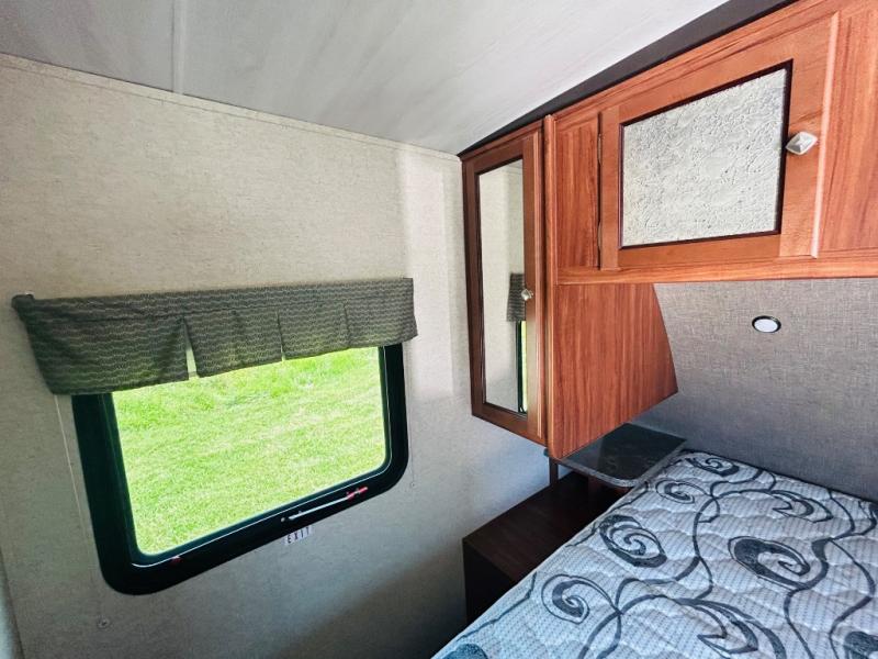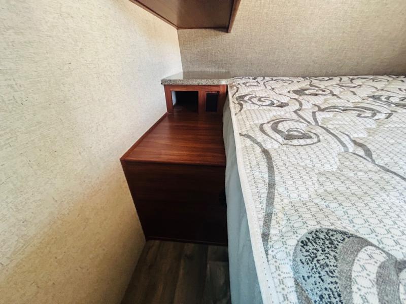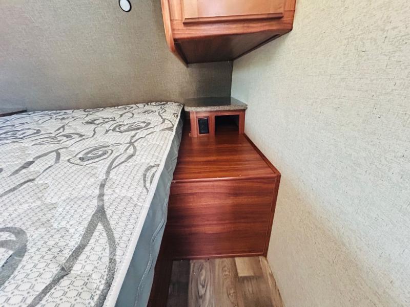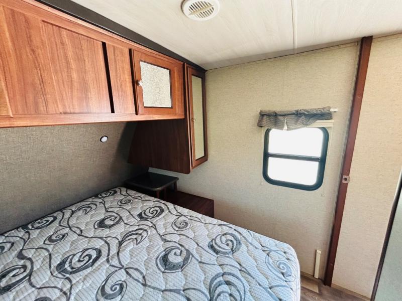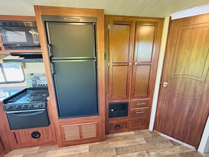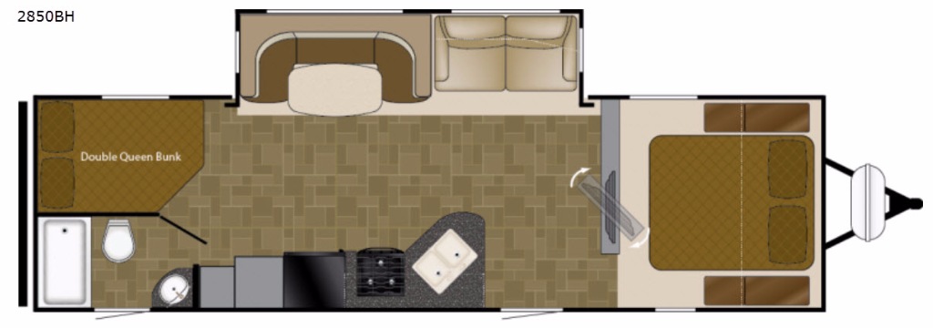 A set of queen size bunk beds, a large slide out for added interior space, and dual entry doors make this Wilderness 2850BH travel trailer a "must have". Plus it features a swivel TV cabinet allowing viewing from the living room or the bedroom.