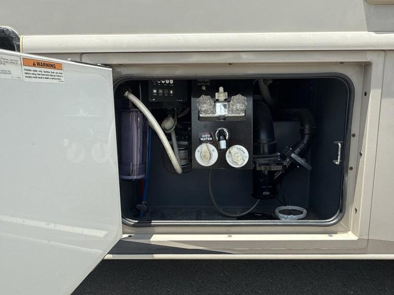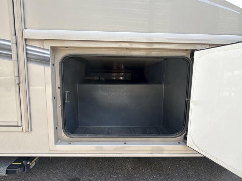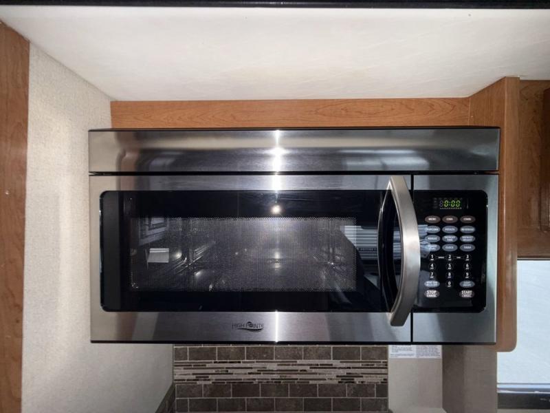 Step inside model 30D just forward of mid-coach and notice a slide out straight ahead along the road side. This slide features a three burner range with overhead microwave oven, and a 66" jack-knife sofa with two sets of seatbelts. Your back seat travelers will be safe here and you can easily cook up nice meals and snacks while you are on the road. The refrigerator is to the left of the entry door, and there is a double sink along the interior wall making cleaning up a breeze. A storage pantry is also available for all of your canned and dry goods, plus more.