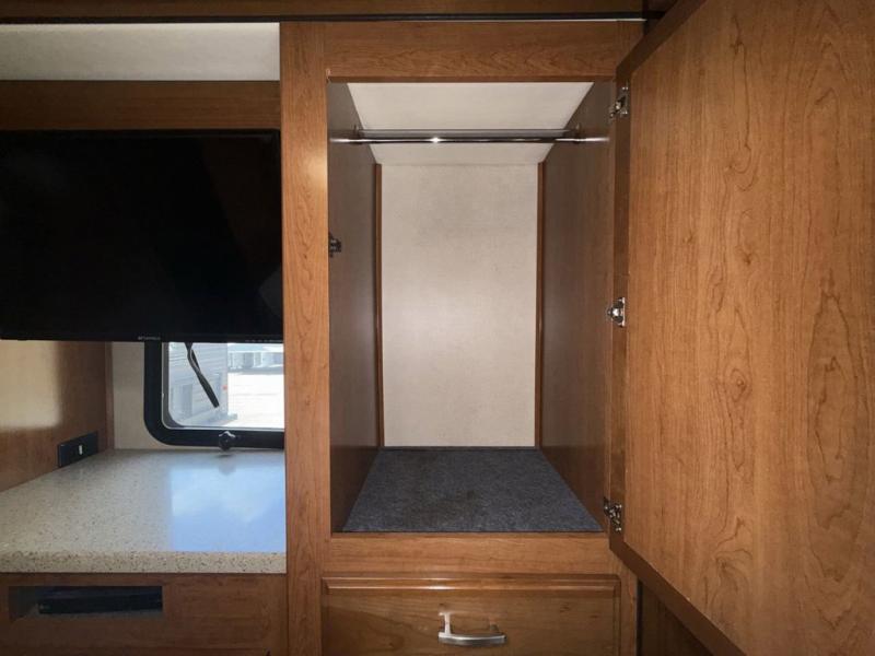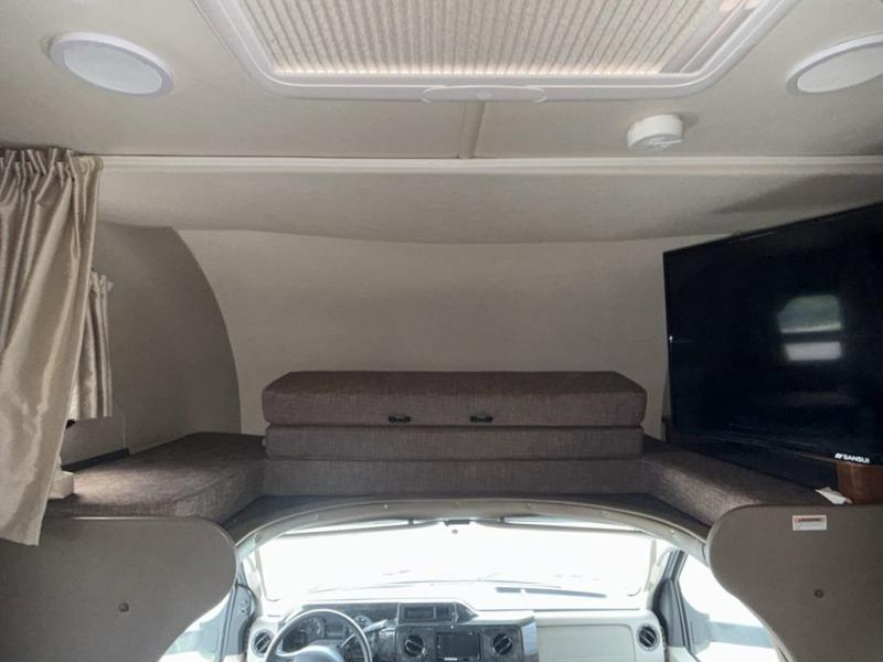 Up front above the cab area you have a 40" LED TV on a swing arm for multiple display angles. The cabover bunk is 42" x 80" and perfect for the kids or an overnight guest.