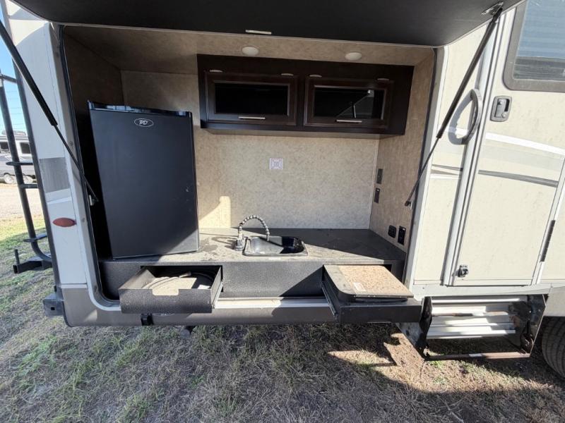 Outside you are sure to enjoy the exterior kitchen with a refrigerator, sink, and a two burner cooktop. Don't forget about the exterior storage for your outdoor gear and the 18' awning for some outside shade, plus much more!