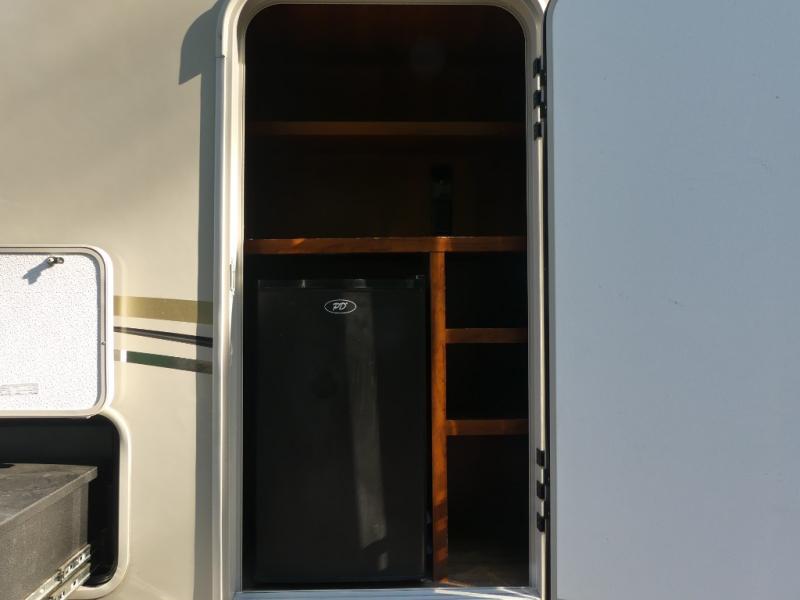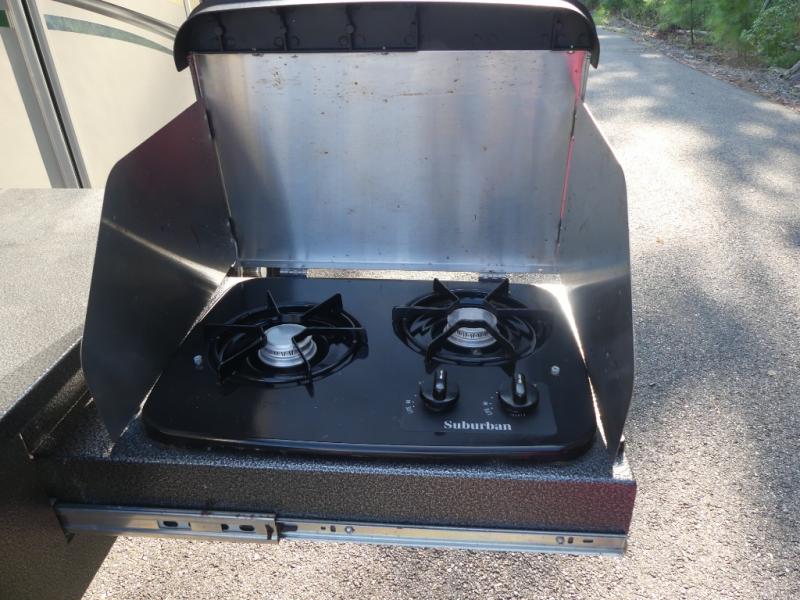 There are plenty of overhead cabinets throughout the inside of the fifth wheel as well as exterior storage. Outside you can even enjoy the exterior kitchen which has a sink, and a two burner cooktop. Plus there are many more features to love!