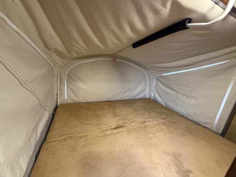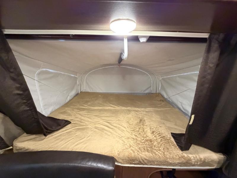 This Jay Feather 7 model 16XRB expandable by Jayco offers rear and front tent end beds, a bench sofa, and rear bath.