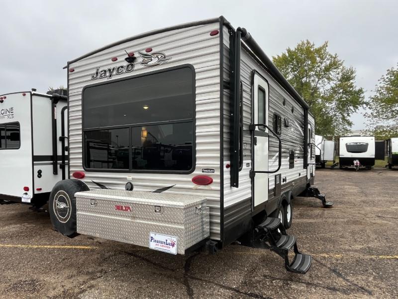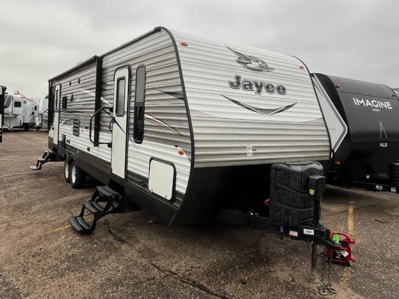 Come relax inside this 28RLS Jay Flight travel trailer by Jayco. Inside you will find a rear living area, single slide, and two entry doors!