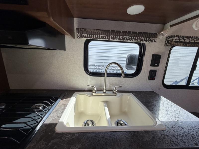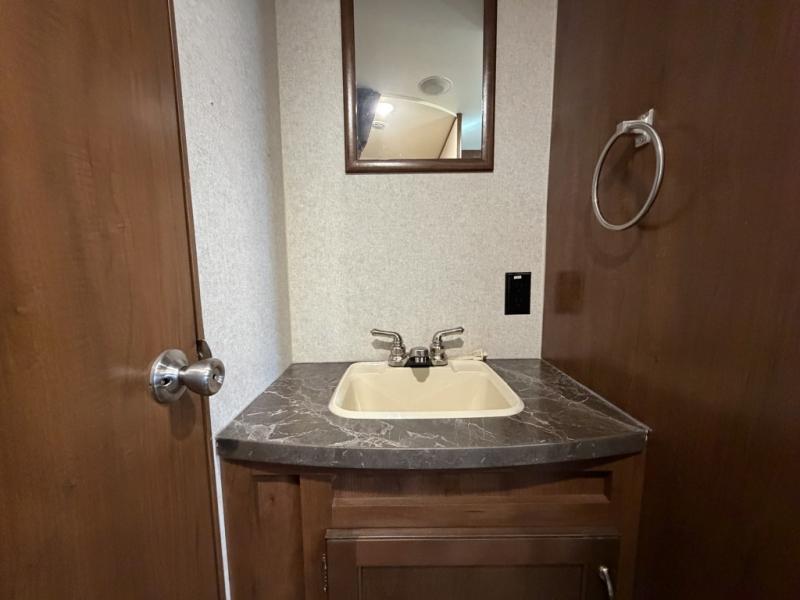 You will find plenty of overhead cabinets throughout the trailer as well as exterior storage, and much more!