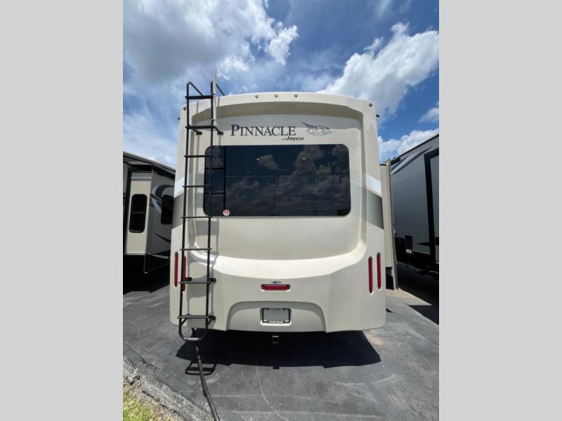 You will love all of the room and space inside this Jayco Pinnacle 36KPTS fifth wheel. This model features triple slide outs and a rear living area.