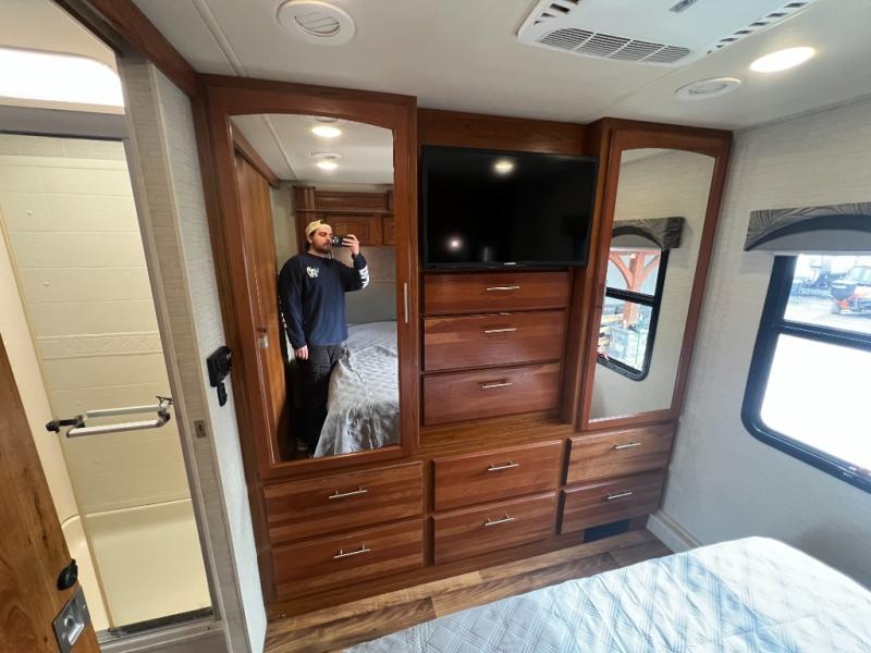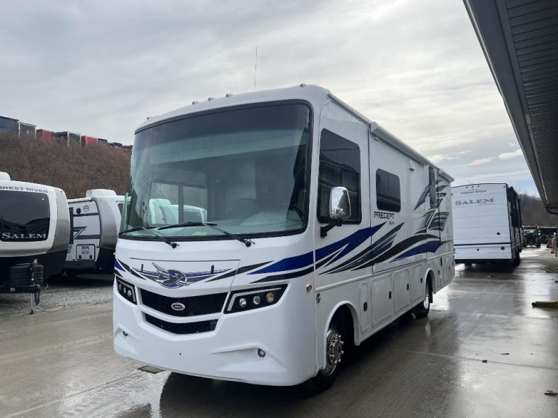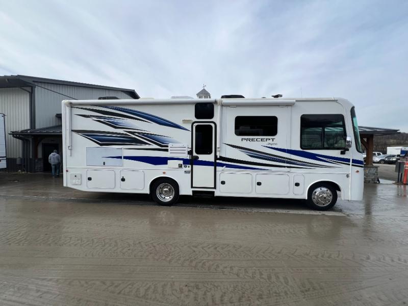 Let this Precept 31UL class A motor home by Jayco take you on your next cross-country adventure! This motor home has a rear bedroom, triple slide outs, and plenty of room for all of your belongings!