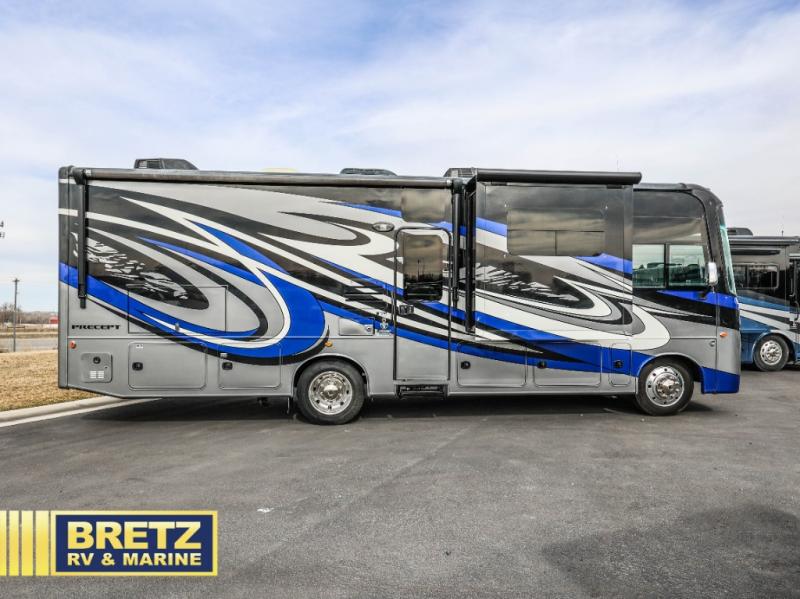Let this Precept 31UL class A motor home by Jayco take you on your next cross-country adventure! This motor home has a rear bedroom, triple slide outs, and plenty of room for all of your belongings!
