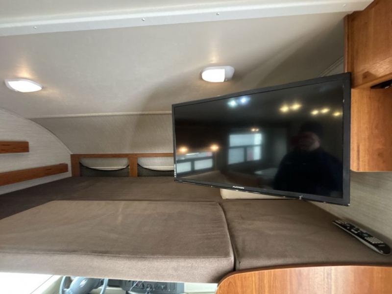 In the front of the motor home, you will also find a cab over bunk and an overhead TV.