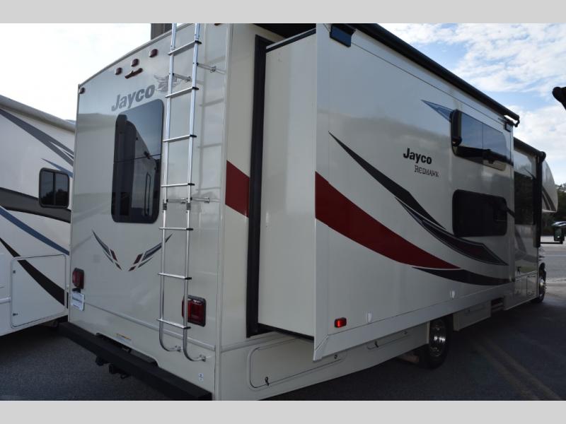 A set of bunk beds, double slide outs, and a front cab bunk are some of the features that you will love about the 31XL Redhawk class C motor home by Jayco.