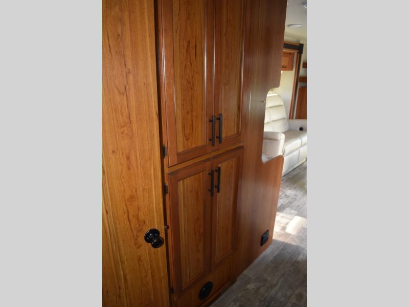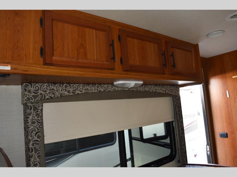 There are plenty of overhead cabinets throughout the motor home as well as exterior storage, and a 10' 8" awning, plus more!