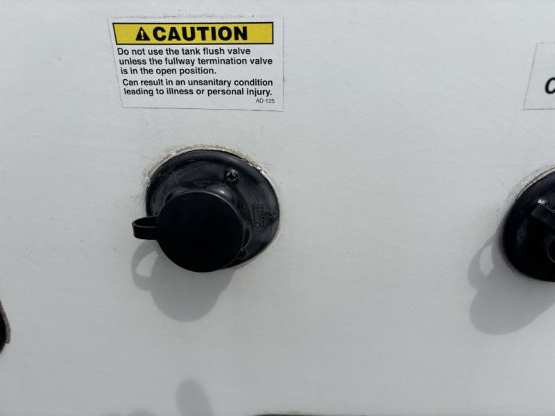 The rear of this unit offers a convenient bathroom including a radius shower, toilet, sink with medicine cabinet, and linen storage above an outdoor kitchen.