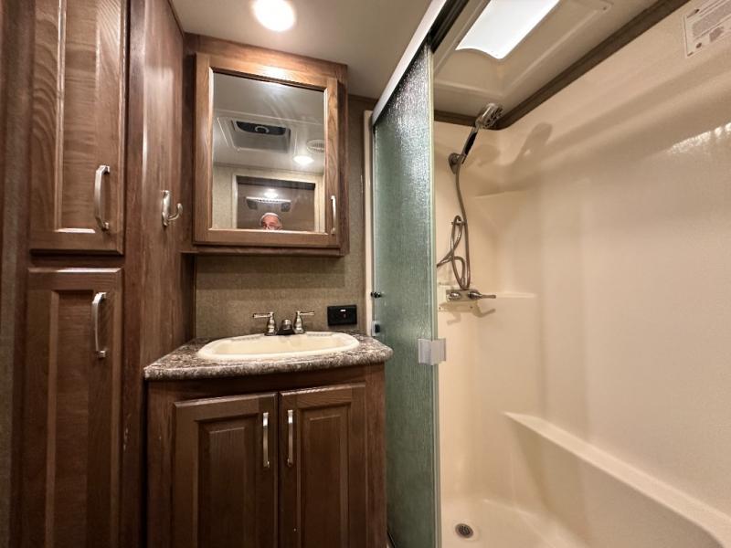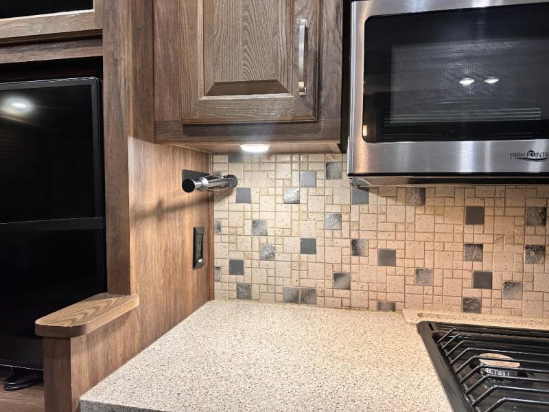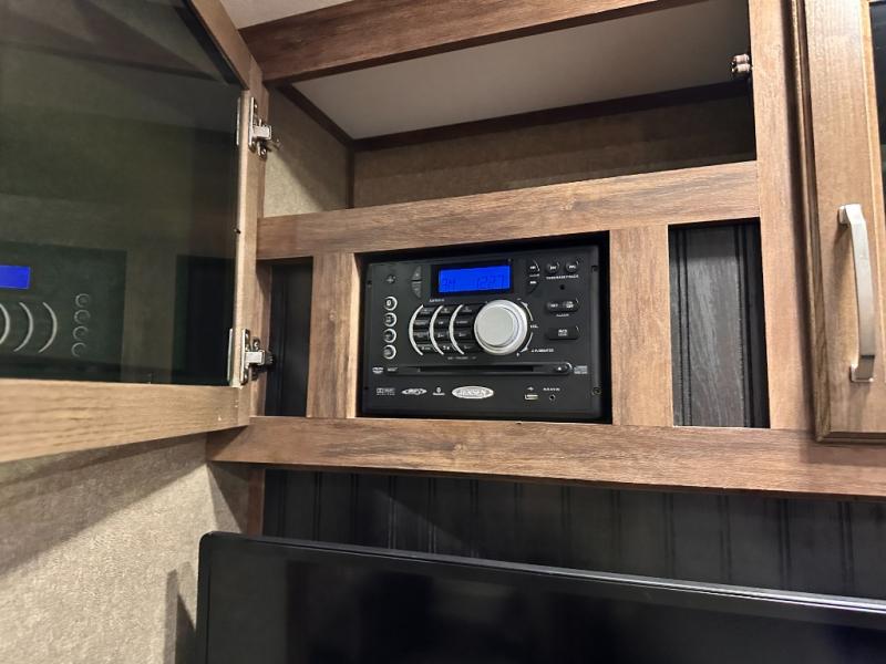 Along the rear wall you will enjoy a hide-a-bed sleeper sofa and overhead storage which makes it easy to keep things organized and tucked away, plus allowing overnight guests to be comfortable having a place to sleep, and so much more!