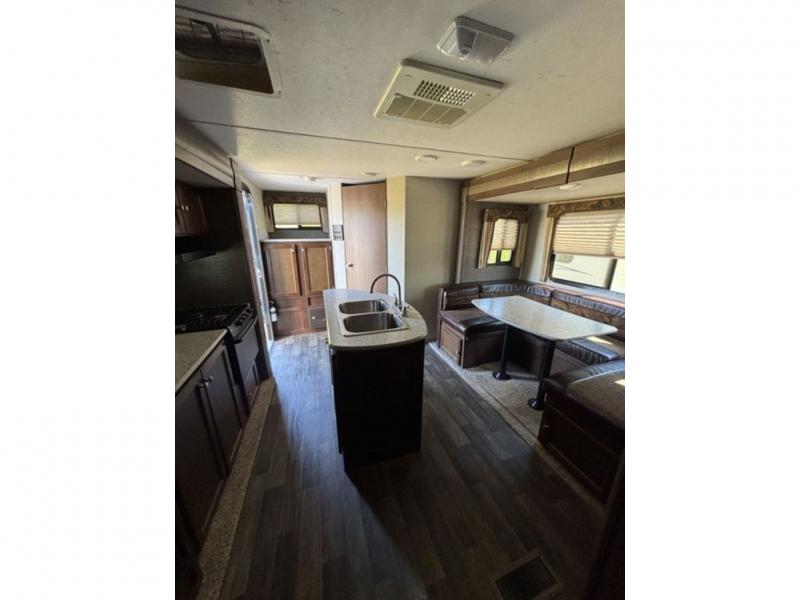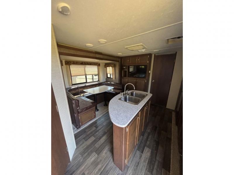 This Keystone Bullet trailer 220RBI has everything you need to enjoy spending time in a new environment of your choice. This unit features double slides for added space, a rear corner bath, and convenient kitchen island!