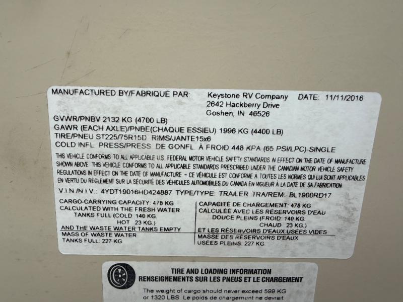 Used 2017 Keystone RV Bullet Crossfire 1900RD Travel Trailer