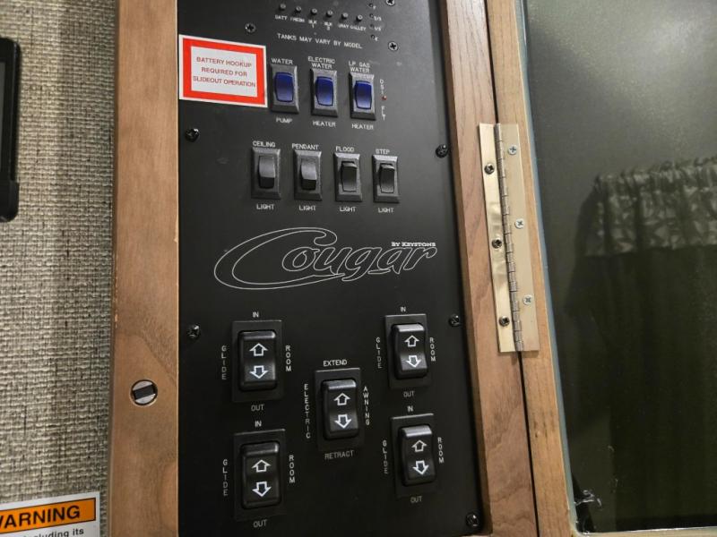 If you enjoy time away from home, you will love your time away in this Keystone Cougar 326RDSWE fifth wheel. This model features quad slides, a rear entertainment center, and plenty of room to entertain guests.