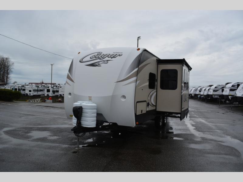 Have fun camping in this Cougar 1/2 Ton series travel trailer built by Keystone RV. Inside you will find all the amenities you need to enjoy your time away from home.