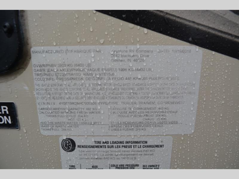 Used 2017 Keystone RV Cougar Half-Ton Series 19RBEWE Travel Trailer