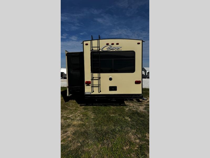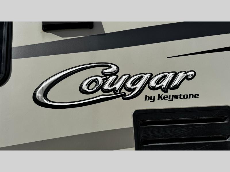 This Cougar X-Lite fifth wheel by Keystone RV offers a rear living layout with recliners, a large single slide in the living/kitchen space, a front bedroom with a walk-through bath, and more!