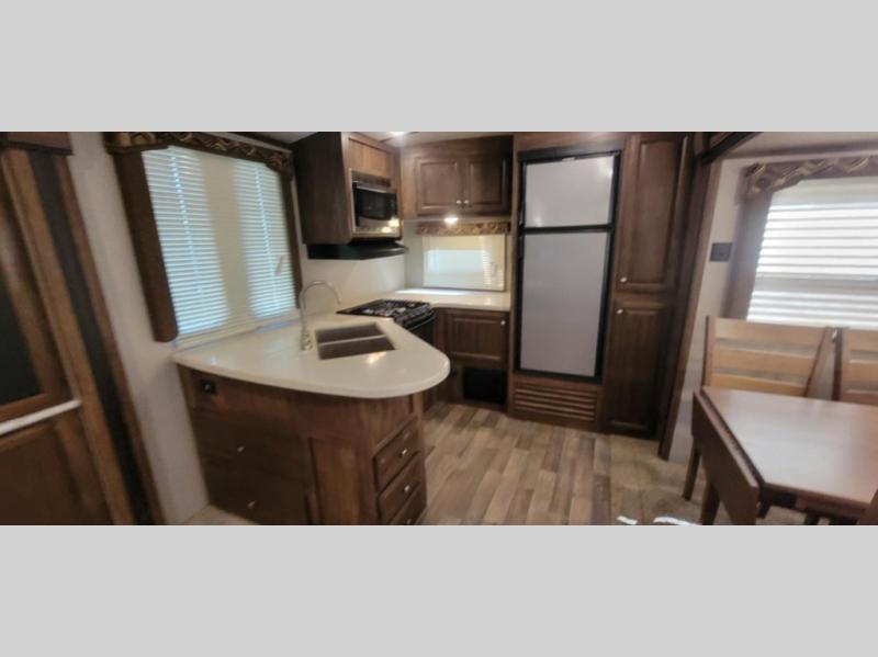 Looking for a rear kitchen layout, an outside kitchen, and plenty of seating for your family and friends? Look no further than this Keystone Cougar X-Lite travel trailer.