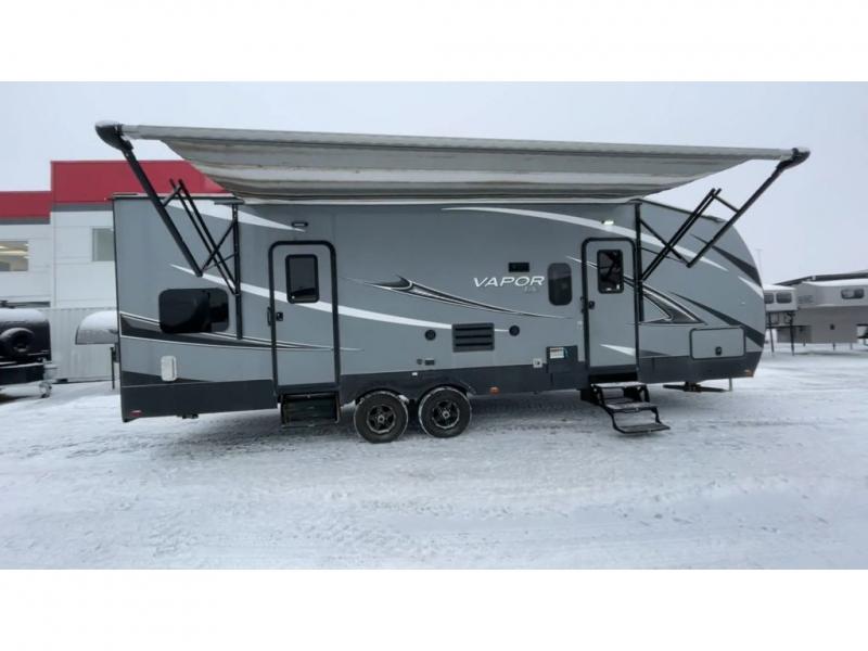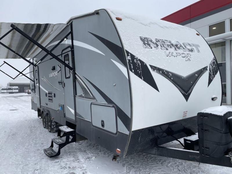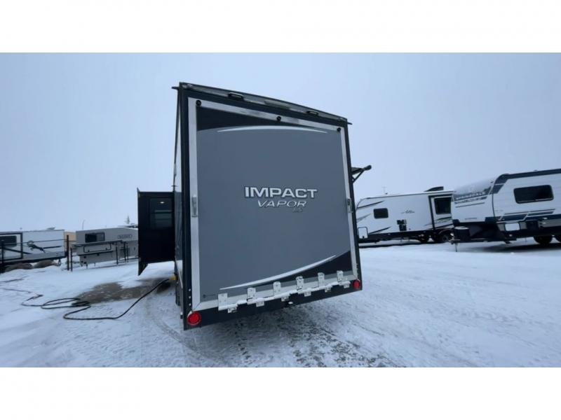 Enjoy every minute of your next weekend adventure both inside and out with this Keystone Impact Vapor Lite toy hauler travel trailer model 28V. This unit features a single slide for added interior space, dual entry doors besides the rear 8' garage door, a 10' cargo area, and comfortable living space throughout the trailer.