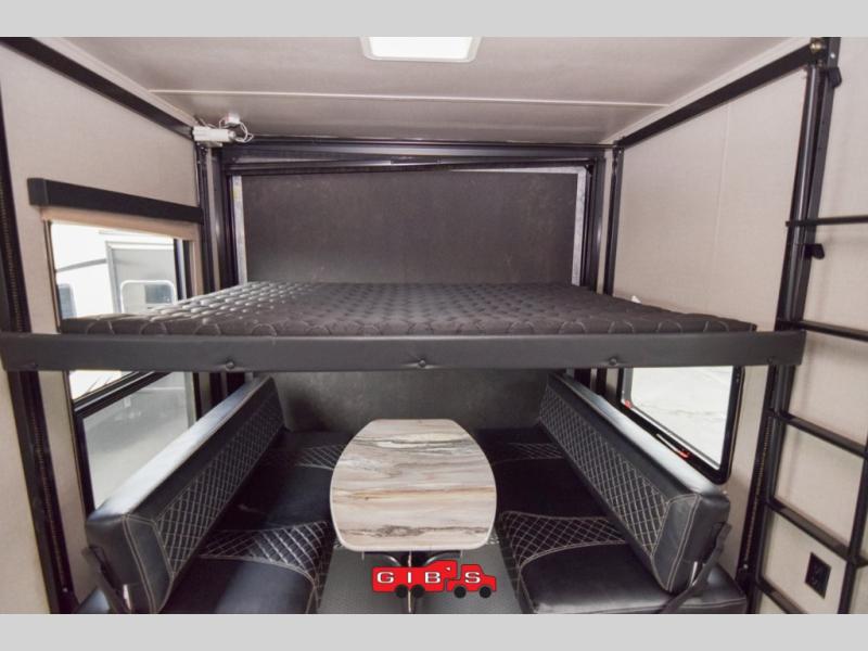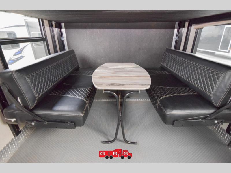 You will not only find space for your toys to ride to and from your destinations, but when you arrive and they are removed you can enjoy dual opposing sofas with a top queen bed along with overhead cabinets. There is also a side man door so you can easily check on things once the rear ramp door is closed.
