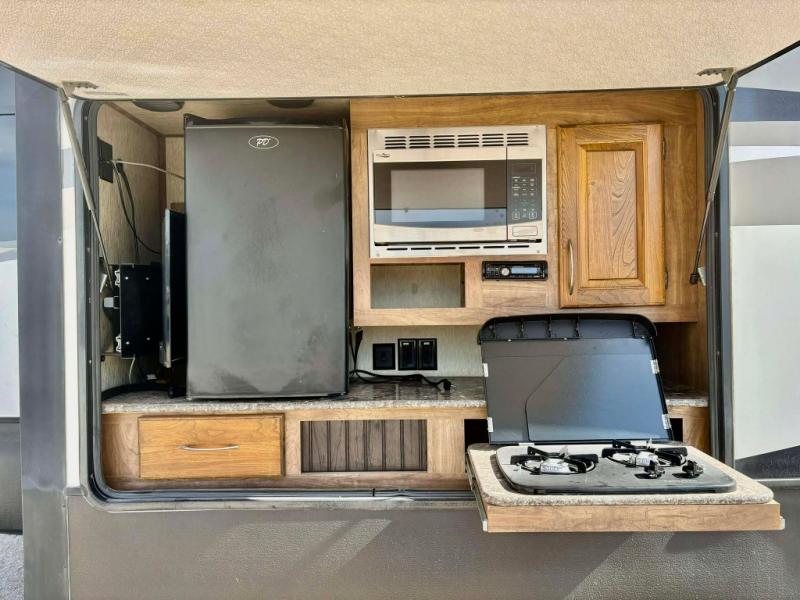 You will also enjoy the outside storage near the front with a pass-through compartment making it easy to stow away all of your outdoor camping gear, and so much more!