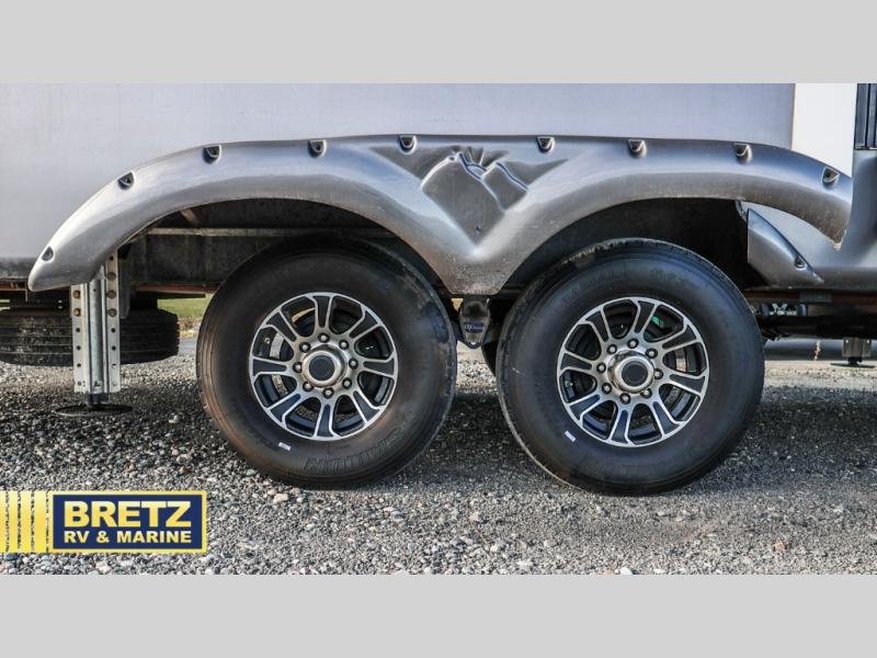 Step inside and see a spacious gathering place to the left of the door. There are dual slides that offer increased floor space giving you an at-home feel. There is a three burner range with convection microwave oven, a double door refrigerator, and an entertainment center with HDTV and fireplace in the slide out to the left of the entry door. You will also find a convenient kitchen island that offers counter food prep space and double sinks for cleaning up. The overhead cabinets, and lower cupboards and drawers will make storing your dishes easy too.