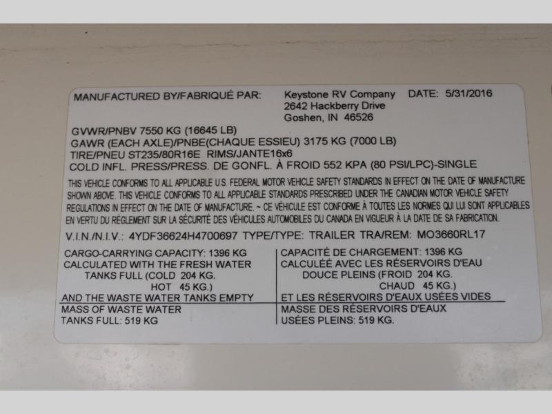 Used 2017 Keystone RV Montana 3660 RL Fifth Wheel