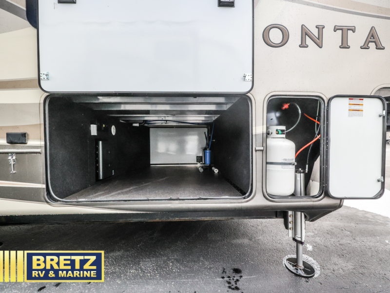 Step inside model 3790RD and see just how enjoyable your next camping trip can be with all the space inside. As you enter find a dining table with four chairs in a slide out to the left of the door. Straight ahead there is a slide out refrigerator, pantry, counter space, and three burner range with convection microwave oven. Additional counter space with overhead cabinets and lower storage are straight in from the door along the interior wall. There is also a convenient kitchen island where the double sink is located.